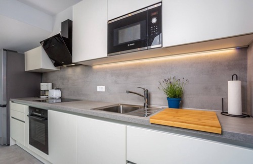 Located in Malinska on the island of Krk, just 800 meters from the sea, this modern villa offers the perfect vacation with a private hydromassage pool. Elegantly decorated, the villa can accommodate up to six people and offers three spacious bedrooms located on the 1st floor, two bathrooms and an additional toilet. On the ground floor there is a spacious living room with a fully equipped kitchen and dining area, while the balcony reveals a captivating panoramic view of the sea and the surrounding landscape. The villa's outdoor area is perfectly arranged for relaxation, with sun loungers by the pool, a barbecue and private parking. Ideal for families and friends looking for a comfortable and luxurious vacation on the Adriatic.