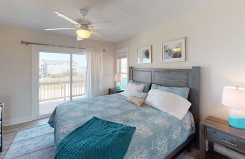 No expense was spared in the creation of this lovely 4 bedroom, 3.5 bath home, located in the secluded 4x4 section of the Outer Banks. “Seabatical” is the perfect size for your family, with plenty of room to spread out and relax! Wake to the sunrise in the king master on level three with deck access and move to the spacious great room, perfect for gathering, with incredible views of the ocean. The well stocked kitchen with island seating has plenty of room for multiple chefs. Take your meal to the screened in porch just off the kitchen and enjoy the night air while listening to the roar of the ocean.