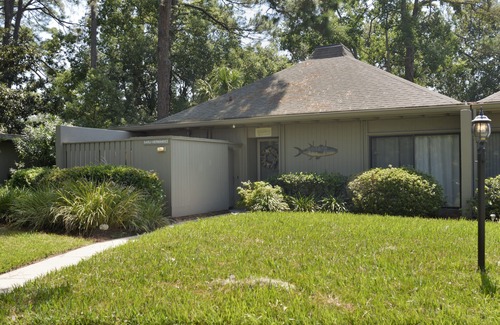Enjoy a relaxing Sea Pines vacation while staying at this beautifully decorated, ground level villa with an open floor plan and breathtaking rear lagoon view. Just a quick 5 minute walk to our beautiful Atlantic Ocean beaches-just use beach access #45 just across N. Sea Pines Drive. The bridge over the lagoon in back ends at a well maintained practice putting green that you can use. 1/2 mile to 600 acre forest preserve with horseback guided tours daily and electric boat echo tours. Bedroom configuration is King in Master and 2 double beds in guest bedroom.
