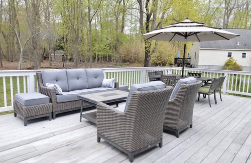 Enjoy some quiet time in this home located on the north end of Jamestown. Only 5 minutes’ walk will bring you to a beautiful local beach. Enjoy a quiet and peaceful stroll in the morning to catch the sunrise and in the evening for some beautiful sunset. The house consists of 3 bedrooms (1 king, 1 full, 2 twins, and 1 bonus twin bed), 2 baths, and well stocked kitchen. With a spacious deck in the back, enjoy some meals outdoor, sit and relax in the backyard to read a book, listen to the birds chirping, or feel the breeze. This home boasts nature at its best! While it is tucked in a quiet street, it is only a 10 minutes’ drive from Newport and a 15-20 minutes’ drive from Narragansett.