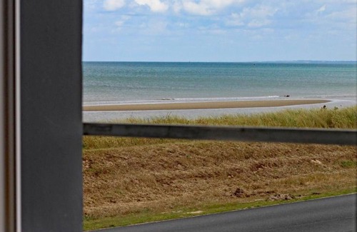 Semi-detached house with 2 other rentals. Living room (TV, internet via ADSL box). Kitchen (oven, dishwasher, induction hob, fridge with freezer, microwave). Bathroom with shower. Separate toilet. Upstairs, (steep staircase), bedroom 1 (2 twin beds 90x190 and a single BZ), bedroom 2 (bed 160x200) with relaxation area and office, separate toilet. Baby equipment on request. Sheets and towels for hire. Cleaning service at an additional cost. Electric heating at an additional cost. Private enclosed courtyard. Private unenclosed garden. Garden furniture. Deckchairs. Barbecue. Laundry room shared with the other gîtes with washing machine and dryer. Bicycle storage. Shared parking. Sabrina and Mickaël welcome you to this old farmhouse by the sea. Behind the beach, this old house now offers 3 holiday rentals "feet in the water" or almost! You will indeed only have to cross the sea wall to spread your towel on the sand. With a superb view of Tatihou Island to the cliffs of Omaha Beach, the hamlet of Gougins is a lovely place for your stay. The owners will be happy to share their little paradise with you. With its generous surfaces and enclosed grounds, this cottage is ideal for families. The sea view from the bedrooms is superb and invites you to swim! Possibility of parking a boat on the owner's private land.