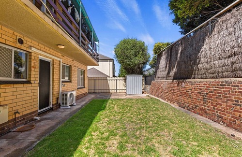 The bathroom is equipped with a shower and essential fittings, while central heating and cooling keep the space pleasant year-round. Though there is no laundry, guests are provided with hangers, a drying rack, and extra blankets for convenience. Step outside and enjoy easy shared access to Hove’s golden shoreline, or take a short stroll to Glenelg’s cafés and shopping spots. With free onsite carport parking and a quiet setting, this retreat offers a restful coastal base.