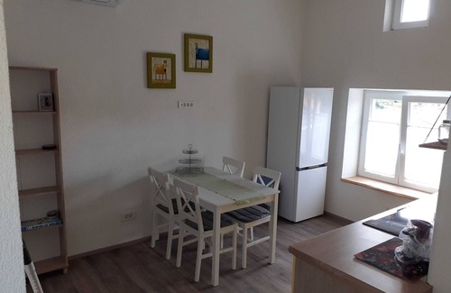The "Secluded Authentic Apartment with Terrace" in Portorož, Primorska, Slovenia, likely refers to a vacation rental designed to offer guests privacy, a local touch, and scenic surroundings. Portorož, known for its seaside charm, mild Mediterranean climate, and vibrant tourist scene, is part of the coastal region of Primorska. The apartment may showcase traditional Slovenian or Mediterranean architectural elements, such as stonework, wooden beams, or rustic decor.A private outdoor space for relaxing, dining, or enjoying views of the sea, garden, or surrounding landscape.A lively beach with cafes, restaurants, and watersports. Fully equipped kitchen, living space, Wi-Fi, and parking. Some might include extras like air conditioning or a barbecue area.