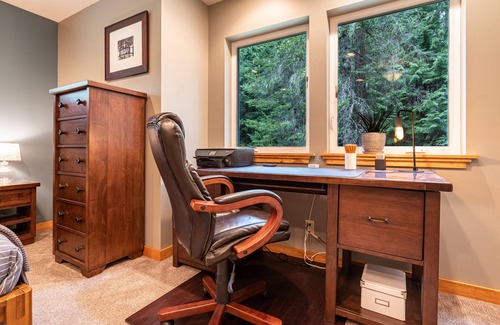 A dedicated workspace with full size desk and office chair is located in the master bedroom and perfect for those attending school or working remotely. The internet service can easily support multiple Zoom meetings.