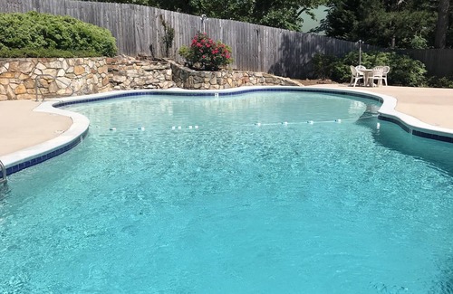 Creekside is a short drive from our beautiful swimming pool, pavilion and lower lawn. It has a yard grill and private fire pit. It also is dog friendly ($200 pet fee) and has a full kitchen, so be sure to bring your groceries! Upon entering the front door, the open floor plan you will let you breathe easy. Relax in the living room snuggled up with a glass of wine or cup of tea, or movies and popcorn while sitting in front of the fireplace.