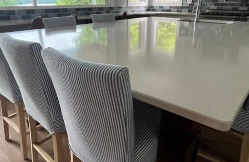 Eat at the large island, perfect for making gourmet meals, and enjoy the views of the lake! Finish your day watching fireflies from the covered decks or gather around the fire pit for s'mores and evenings under the stars.