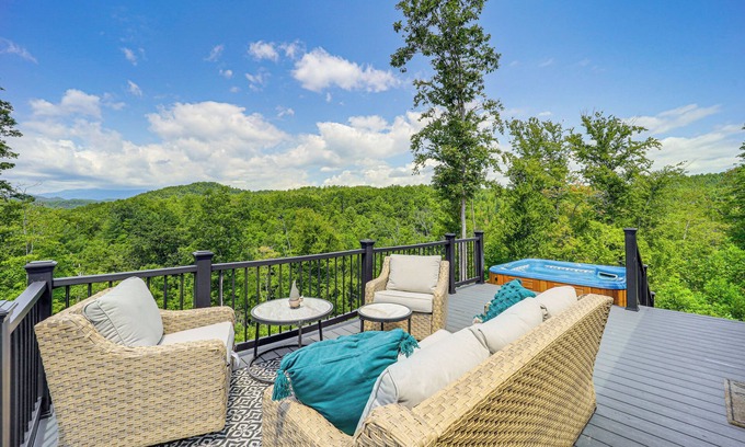 Spacious Deck | Fire Pit | Panoramic Mountain Views