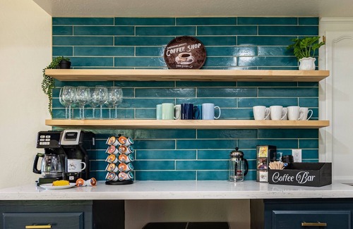 - Coffee bar with Duo Keurig maker, complimentary assortment of delicious flavored K-pods with creamers and sweeteners, French press and tea station with complimentary tea bags
