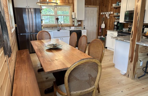 Quiet Tranquility with stunning sunsets, surrounded by the Weeks Bay National Estuary. You will immediately feel excitement the moment you pull around the curve and down the drive, because you can see the sun dancing on the water beyond the house. Walking inside you know you made the right choice. The cozy wood walls wrap you in serenity while the new remodel has all the essentials to make for a wonderful relaxing get away! So many original features were left in this old cabin and like the original wood walls, floors and doors in some of the rooms. Custom nooks and crannies make for perfect spots to take your work with you. The sectional sofa is large enough for a group to gather on. And the open floor plan can accommodate extended family and friends, plus the pets, with an easy and natural flow. We had our family here for this past Easter Gathering. There were 18 of us and two dogs! The oversized back porch make rainy days the best days as you watch the storms roll in without fear of getting wet! Take an adventure with the kayaks ! Throw out a line, cast a net, put out a crab trap or just sit on the dock! The sunsets are spectacular! The birdwatching is amazing. You will see all different types of fish and often have Dolphin visits. My sister is partial to the east side view where we have a sweet little porch to drop your groceries when you walk up the stairs or to sit and sip your morning coffee and bird watch. We offer mariner whips free of charge and a boat lift for an additional fee. The dock is shared with the rental "The Last Shack" which is adjacent to the property. Both homes can be rented for a combined experience to sleep 20! The Last Shack sleeps 8. The Last Cabin can sleep 12. Moments from Magnolia Springs and only a 15 minute drive into Fairhope or Foley or a 30 minute drive to the beaches. Quite simply, I could stay here awhile, and found it hard to leave!!