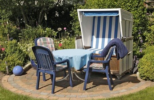 In the spacious living area comfortable seating sets invite you to linger and the electric stove also spreads a cuddly feel-good atmosphere. Delicious dishes can be prepared in the state-of-the-art, open-plan kitchen, which has been equipped with various technical amenities. Also for media entertainment has been provided with the flat-screen TV, a DVD player, a music system and free Wi-Fi. In bright sunshine, three beautiful sitting areas lure in their own garden and a charcoal grill is available for delicious barbeques. Should it be a bit windier, you can make yourself comfortable in the cuddly beach chair! After long walks on the North Sea coast, which is only 25 km away, offers a relaxing sauna. The sauna can be used free of charge in the neighboring building and is equipped for the all-round feel-good program with loungers and a fully automatic coffee machine. The comfortable double bed in the bedroom is ready for a good night's sleep after eventful holidays and on request, a baby travel bed can be provided.