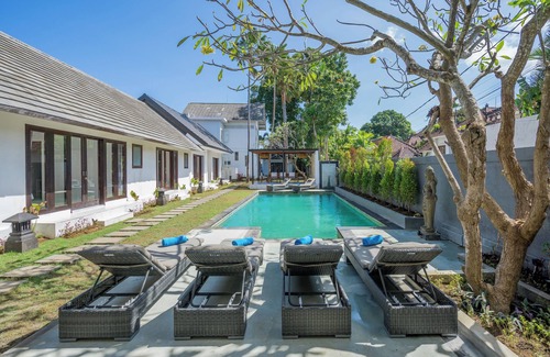 BOOK NOW to secure your 10-bedroom (17 beds) luxury villa estate in a fantastic location in Seminyak and short easy walk to the beautiful beach!