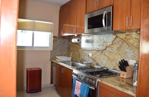 This apartment has 2,150 sq ft or 200 M2 with marble floors, 3 bedrooms, 3 full baths, living, dining room, bar area with a fully equipped kitchen with granite counters, laundry room, a balcony facing the Ocean and free WIFI Internet, TV, Apple TV with Netflix. We have an excellent bus transport service in the hotel zone and a rental car is not needed.