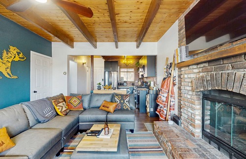 Nestled perfectly between the serene Lake Arrowhead and the picturesque Big Bear Lake, this charming cabin in Running Springs, CA, is your ideal getaway for outdoor adventures and cozy family gatherings. Just a short 20-minute drive to either lake, you can easily indulge in boating, swimming, kayaking, or paddleboarding. After a day of exploration, unwind on the back patio, complete with comfortable seating and a gas grill, perfect for cooking dinner for your group.