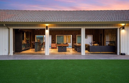 Welcome to this spectacular and serene estate, nestled next to some of Sonoma’s most beautiful rolling vineyards. An entertainer's paradise, enjoy this stylish, modern home with family and friends, or unwind with your colleagues on a corporate retreat. Only 9 miles from downtown Napa and 6 miles from Sonoma Plaza, there are plenty of activities to keep any group content.