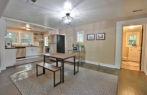 Tucked away on a vast 8,276 sq. ft. lot in West Knoxville, this cozy 2-bedroom cottage is the perfect hideaway, blending suburban peace with the thrill of Downtown just 15 minutes away! On nature's doorstep, our home is enveloped by stunning landscapes, and a lush forest, while the Tennessee River and Lakeshore Park are just a 20-minute walk away. But there’s more – your stay includes lightning-fast 545 Mbps Wi-Fi, a smart HDTV, and access to a deck complete with a BBQ!