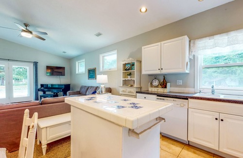 Walking inside, instantly feel at home as you take notice of the open living room's comfortable seating, large TV, and grand piano. The adjacent well-equipped kitchen will excite the chef of your family with its charming center island.