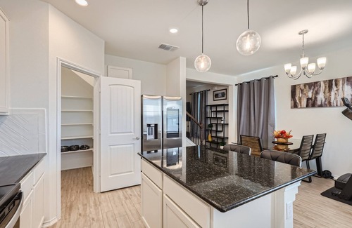 Indulge in a luxurious stay at this newly built, fully furnished 5-bed/3.5-bath standalone home in the Austin/Georgetown area. Perfect for groups of friends seeking relaxation or families with children who desire a space for active play. The property offers proximity to various amenities like Kalahari Resorts, several parks, Wolf Ranch Shopping center, and 30 mins to Downtown Austin with convenient access to I-35 and state highway 130, 3 to 8 mins to Walmart, HEB, Costco and lots of restaurants.
