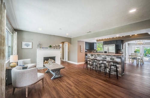 Upon entering this spacious private home, you are greeted with the main kitchen area, bar stools, and cute sitting area which is great for entertaining while cooking your favorite meals. The living room is expansive with a comfortable seating area, a large 10-person dining table, and a wall-mounted TV. Glass doors open up to your private outdoor patio with a pool, inground SPA, and ambient lighting. Multiple seating areas make this outdoor space a great area to gather with family and friends. Two bedrooms have king-size beds and one guest room with a queen bed. There are lots of parking available and you are free to bring an RV or boat. There is a boat launch on the Manatee River very close to the home. The beaches are why you came, and they are just minutes away!! Anna Maria Island/Bradenton beaches are a 15-minute drive west on Manatee Ave. If you are looking for more beach adventure, Lido Beach and the famous Siesta Key beaches are a 40-minute drive south of the home. Just 20-30 minutes from SQR Airport and less than an hour from Tampa Airport giving you plenty of flight options.