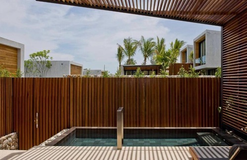 Although Studio Pool Villas are most compact among other categories, all modern comforts and luxuries are so prevalent. Each villa presents a nice bedroom especially designed to enhance the feeling of seclusion. A highlight here is its ultra-spacious bathroom where the natural sunlight shines on a romantic two-person bathtub which is separate from rain shower and toilet. The surrounding greenery fence helps make this villa secluded and beautiful.