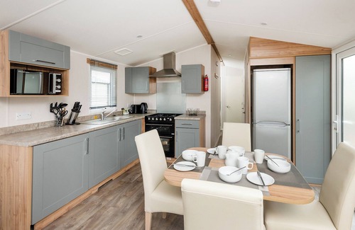 Modern and comfortable 2-bedroom caravan with one double and one twin bedroom, with additional sleeping for two in the lounge area. Bathroom, some with shower cubicles. open-plan living area. Each caravan comes with individual parking and outside seating area. Sofa bed available. No pets.