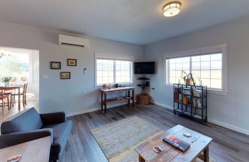 Located on the historical Lewis and Clark Seed Farm established in 1935. This one bedroom, and living room sofa sleeper, one bath farm cottage sleeps 4 comfortably, in a peaceful setting overlooking Youngs Bay. With a view of Saddle Mountain, the Astoria Column, and beautiful lush green sheep fields, you will be drawn to relaxation. This is a bird watchers paradise. The cottage sleeps four comfortably with one full bedroom and a very comfortable sofa sleeper in the living room. All bedding is dust mite resistant and hypo-allergenic. We provide a fully stocked kitchen with a gas stove as well as a BBQ Grill and an outdoor patio with fire pit .Your choice of French Press or brewed coffee . All your bathroom needs, such as Natural shampoo, conditioner, and Body wash, eye make-up remover tissues, blow dryer and lotion.