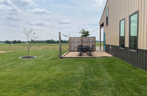 Property sits on 30 acres with only one other dwelling . Come enjoy the beauty of the countryside with your family! Both king bedroom and bunk room are upstairs. Wifi, huge rock shower, and kids area.
