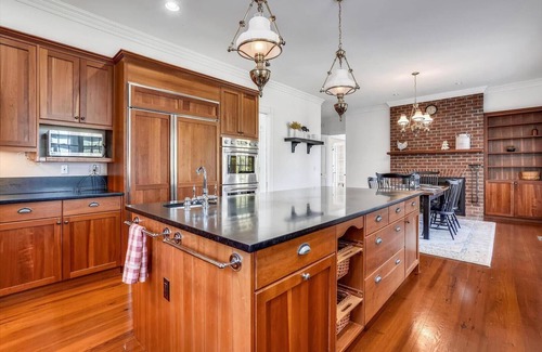 The large, gourmet kitchen and butlers pantry provide all the space you need for bountiful kitchen creations. Multiple large screen TVs are provided for movie nights or watching the big game. Play a game of pool in the sunroom, where you can have a view of the water. Traveling with kids? The third floor has plenty of space for games and fort building at the end of the day. A separate apartment space with 2 bedrooms is located above the garage.