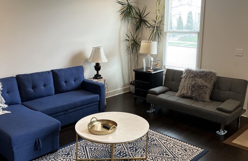 Clean, modern & cozy for your visit to Columbus! This private home comfortably sleeps 6-adults. Each bedroom includes its own on suite bath. The two 1st floor pull out sofas are queen size.