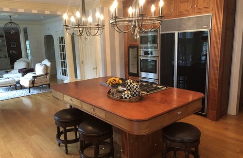 Stately Georgian Colonial with 7,000 sq. ft of living space on three levels - six bedrooms, 4.5 bathrooms, 3 season porch, billiards room with bunk beds, outdoor entertaining space with outdoor kitchen, fireplace, pizza oven and hot tub. Walk to downtown Newburyport with its amazing restaurants and coffee shops, bike to Plum Island. Minutes from other area beaches including Crane’s Beach, Salisbury, and Hampton. Sleeping areas include: (1) Large master suite with king-sized bed, sitting area, balcony overlooking beautifully landscaped back yard; en suite bathroom; (2) second bedroom with king-sized bed; (3) third bedroom with queen sized bed and pull out full sized sofa; (4) fourth bedroom with queen sized bed and sitting area; (5) home office/bedroom with queen sized fold out bed; and (6) sunroom/bedroom with queen sized bed; (7) pool room with bunk beds to sleep four. Large chef's kitchen with eat-in sunken dining nook. Other rooms include: family room with large-screen tv and fireplace, parlor with fireplace, dining room with fire place, and billiards room. Finished basement with ping pong table and foosball table.