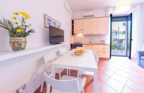 Detached house in villa with large green spaces, on the ground or first floor, with two, four, six or more beds, equipped kitchenette, bathroom, large terraces with lava stone table and chairs to comfortably dine, barbeque, area relax with table tennis and table football, parking space, possibility of bike rental, free wifi, washing machine. Ideal for families and for those who want to feel at home even away from home. There are accommodations with a double bedroom and a living room with a sofa bed for two people and a kitchenette, on the ground floor with large terraces and green spaces, there are also larger accommodations with two independent bedrooms, two bathrooms, living room and terraces.