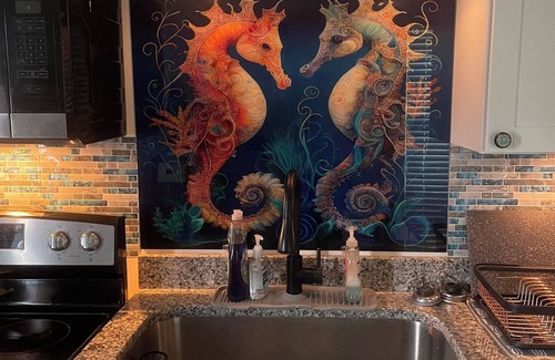 This cozy cottage in Brunswick offers a retreat for guests. With 2 queen beds and 1 trundle bed in the 2 bedrooms, there are plenty of beds for different arrangements. The bathroom features a shower and a hair dryer for added convenience. In the living room, you'll find a single sofa bed and a futon for extra sleeping arrangements. Whether you're relaxing in the AC or exploring the area, this adorable home has everything you need for a wonderful stay. There is a bar around the corner with live bands sometimes on the weekends. You can sit on the porch and listen to the music. Neighborhood is safe. It is close to Golden Isles beaches, Blythe Island Regional Park and Brunswick. The house is cleaned thoroughly between guests. NO REFUNDS FOR FALSE REVIEWS.