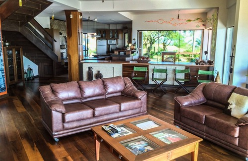 Large house with pool situated between the beach of the yard (2000m) and Balneario Camboriu, SC (6km approx 8min) inserted into the forest, with no neighbors nearby, with silence and guaranteed privacies. House with 4 bedrooms, a master suite (40m2) 2 demi-suites on the first floor and a suite and a toilet on the ground floor, sleeps up to 10 people.