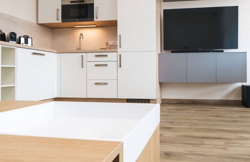"Simba Klínovec", 3-room apartment 68 m2 on 1st floor. Living room with 1 double sofabed. 1 room with 1 double bed. 1 room with 1 double bed. Kitchenette (oven, dishwasher, microwave, electric coffee machine) with dining table and TV. Exit to the balcony. Shower, sep. WC. Balcony. Balcony furniture. View of the mountains. Facilities: Internet (WiFi). Garage. Please note: non-smokers only.