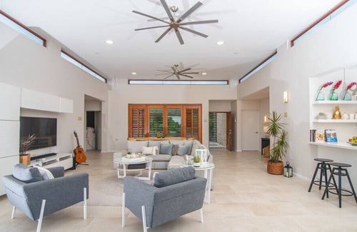 Relax and Escape at Simmer Down - a stunning modern-contemporary villa with 4 bedrooms and 4 bathrooms located in Silver Sands. The establishment is equipped with swimming pool and Jacuzzi, fully staffed with own cook, housekeeper/laundress, gardener and pool man.