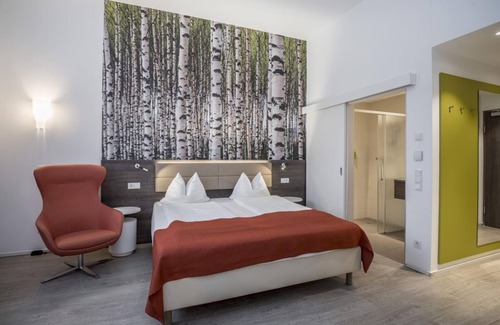 With its innovative construction, the spacious rooms and the central and quiet location, the Eco-Suite Hotel positions itself as an attractive 3 *** city hotel with a good price-performance ratio. The hotel offers the ideal location for trade fair visits, conferences or simply a classic city break. The city center can be reached on foot in about 20 minutes and by bike in 10 minutes (bike path right behind the house). The main train station can be reached in about 20 minutes on foot or by bus number 6. All 44 suites are equipped as follows: small kitchenette, refrigerator (not filled), comfortable seating for eating and working, flexibly attached flat-screen TV, 24-hour check-in, free WiFi and free parking.