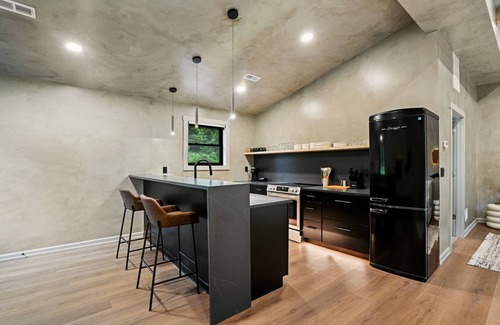 Siverly Bungalow is the perfect romantic retreat in Hocking Hills. A modern hideaway where you and your partner can disconnect from the world and reconnect with each other. Surrounded by forest and just a short drive from Hocking Hills’ most loved trails and attractions — including Old Man’s Cave, Ash Cave, and Conkle’s Hollow — you’ll have easy access to the adventure you crave! This is an open studio style cabin with all the modern touches you could want! Other cabin located on the pond and could be rented together- Siverly Haus! 21 yrs old or older to rent. AWD/4WD recommended.