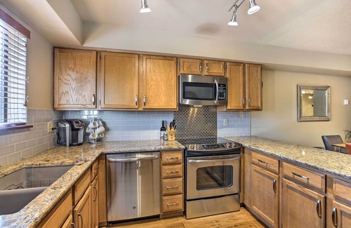Plan your next Rocky Mountain family getaway to this renovated 2-bedroom, 2.5-bath Breckenridge vacation rental! This 3-story 1,276-square-foot townhome features a gourmet kitchen with granite countertops and stainless steel appliances, hand-scraped hardwood floors, a private balcony, wood-burning fireplace, and heated garage. Walk about 2 blocks to the Snowflake Lift for access to Peak 8, hike and bike on numerous trails outside your door, and relax in the 3 community hot tubs and pool!