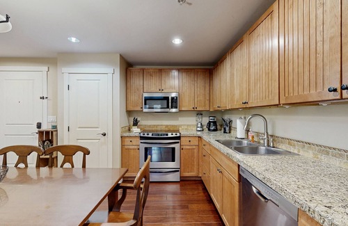 Experience the ultimate Rocky Mountain Vacation in this luxurious slope-side condo. Revel in five-star hotel luxury while enjoying the comforts of a family-friendly condo. You'll be welcomed by fantastic views of Granby Ranch resort and an open feel of the condo’s vaulted ceilings. The most discerning chefs will be delighted to make meals in the fully equipped kitchen with stainless steel appliances. Gather around the dining table to dine and recap the day’s adventures. Or, relax in the living room with a comfy leather couch, a gas fireplace, and a large smart TV to watch your favorite movie. The private patio is the perfect place to grab a beverage and watch your favorite skiers whizz by!