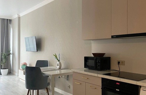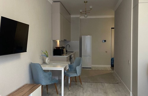 "Sky Harmony" chic studio near Arbat is located in Almaty. "Sky Harmony" chic studio near Arbat provides accommodation, featuring Air Conditioner, Security/Safety, Fireplace/Heating, among other amenities. This Apartment features Air Conditioner, Security/Safety, Fireplace/Heating, to make your stay a comfortable one.