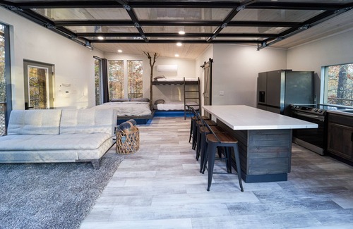 *Brand New Build* Not just an AirBnb but an experience. Fifteen minutes from Dollywood, this Mega treehouse is the only 16+ person treehouse in the country. With 4 amazing treehouses all connected by multi-level decks 25 to 50 feet in the air, and over 5,000 square feet of space including decks, as well as 2 full kitchens, there's room for multiple families to enjoy this once-in-a-lifetime experience. Expand the space by opening the giant glass doors and letting the peaceful nature surround you.