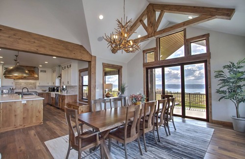The Summit Paradise or what we like to call "A Little Slice of Bearadise" is a newly constructed property located in The Reserve, one of Bear Lake's finest private resorts. The views from the deck of the home cannot be beat. Imagine watching the sunrise over the East mountains with the first touches of light hitting the lake. This gorgeous 7 bedroom, 5.5 bath home welcomes friends and families to gather for their next reunion, yearly vacation or companies Corporate Retreat. Guests will enjoy entertaining in the very spacious well equipped kitchen creating some of their favorite meals with enough counter space to serve everyone. Three different areas in the home to gather whether you are wanting to watch a movie, play board games or play with the littles in a secret hidden room. There is a plenty of room outback on the large grassy area to play some fun family yard games and in the evening gather around the firepit and enjoy some yummy smores. Guests will have access to the Reserve's private clubhouse which includes two swimming pools, hot tub, playground, sports court, exercise room and expansive private beach.
