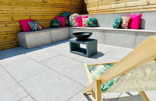 Love island inspired decor and large living and garden area to mingle with friends and family.