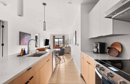 The unit is located on the 4th floor of a new 6-story building, The Hyve. This brand new building offers the best of both worlds: the services of a hotel, such as on-site host, security, pool, and gym with Peloton bikes, combined with the comfort of having an entire apartment to yourself! Enjoy the convenience of complimentary on-site parking, available on a first-come, first-served basis.