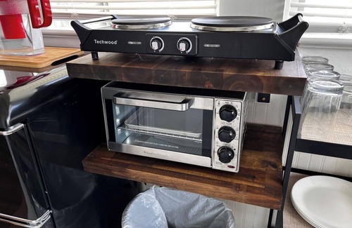 Each guest may feel free to relax on the front porch and in the backyard. The backyard is accessed down the driveway and guests are welcome to enjoy the fire pit. There is also a laundry room which is located near the front door if needed.