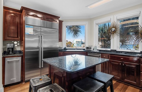 Tequila Sunrise is one of the most beautiful properties on Pensacola Beach. From the Gulf and Sound views, easy access to the beach, boat lift, and gorgeous home, this property has a dream vacation experience waiting for the whole family. The first floor is home to a garage lounging area with one garage parking space and two driveway parking spaces, a beautiful backyard with a private pool, a grill, multiple sitting areas, and access to the boat lift. The second floor offers a large living room with breathtaking Gulf views, a stunning dining area, and a large kitchen with everything you will need to make meals for the whole crew. The third floor provides a wet bar, two guest bedrooms with king-size beds and TVs with streaming capability, and a guest bedroom with a full-over-full bunk bed, a queen trundle, and a queen murphy bed. Finally, the fourth floor is fully dedicated to the master bedroom. The master bedroom has a king-size bed, an attached bathroom with a jacuzzi tub, a personal items safe with code access in the closet, and amazing gulf and sound views. This home also has incredibly easy access to the white sands of Pensacola Beach directly across the street. Book your luxurious vacation now at Tequila Sunrise!