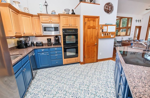 Mid Level: 2 Queen Master Bedrooms each with TV/DVD, deck access and whirlpool bathtubs. Enjoy another living space with large screen TV/DVD and surround sound. Large reading library to enjoy some quiet time reading on the swing or hammock located on the mid level deck along with games and puzzles for the families evening enjoyment. The hot tub sits on the deck and has great sound views.