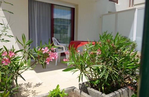Studio-type apartment on the ground floor, in a secure residence (access with badge) with swimming pool on the Minimes marina