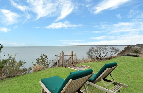 Sitting high on a dune overlooking the Shinnecock Bay and the Ocean beyond, this little gem of a house was perfectly designed by Preston Phillips to create an atmosphere of peace and tranquility. He thoughtfully designed the house to be like a ship sailing off into the enormous span of the Shinnecock Bay and into the inlet where the ocean dramatically rushes into the bay. The house is serene , filled with the magical light from the sea. A wooden staircase leads down from the front lawn to the bay for a sunset view if you can manage to leave the beautifully appointed home which features a hot tub on the deck, fine art on the walls and everything you need for a BBQ.