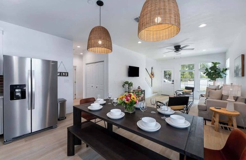 Step inside and discover a thoughtfully designed interior that effortlessly combines comfort and style. Each property is equipped with a full kitchen, stainless steel appliances and a large dining table to accommodate the whole group. The bedrooms are appointed with comfortable king and queen sized beds and luxurious linens. Two full bathrooms in each home create space for all to get ready for the day. Each property also has a washer and dryer for convenience.
