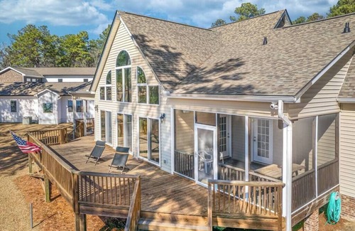 Carolina Lakes is a gates community and provide peace of mind for a relaxing vacation. Guests will provide their car information and then take the scenic, winding roads to the property, nestled on the east side of the lake. The property offers plenty of parking on the spaceous driveway.